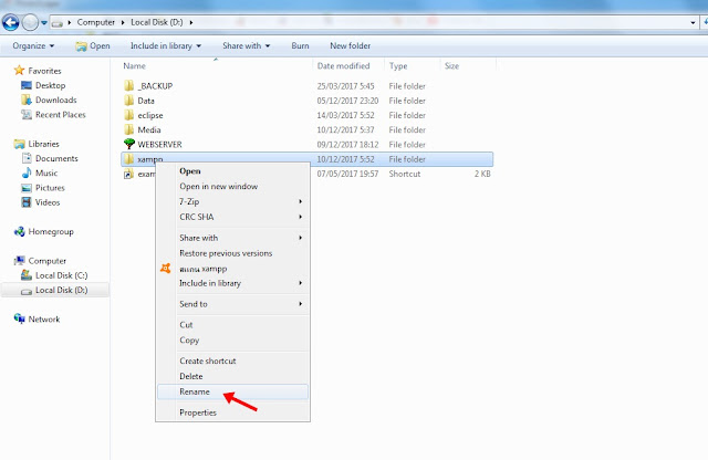 Step 8. Move xampp folder to drive D: